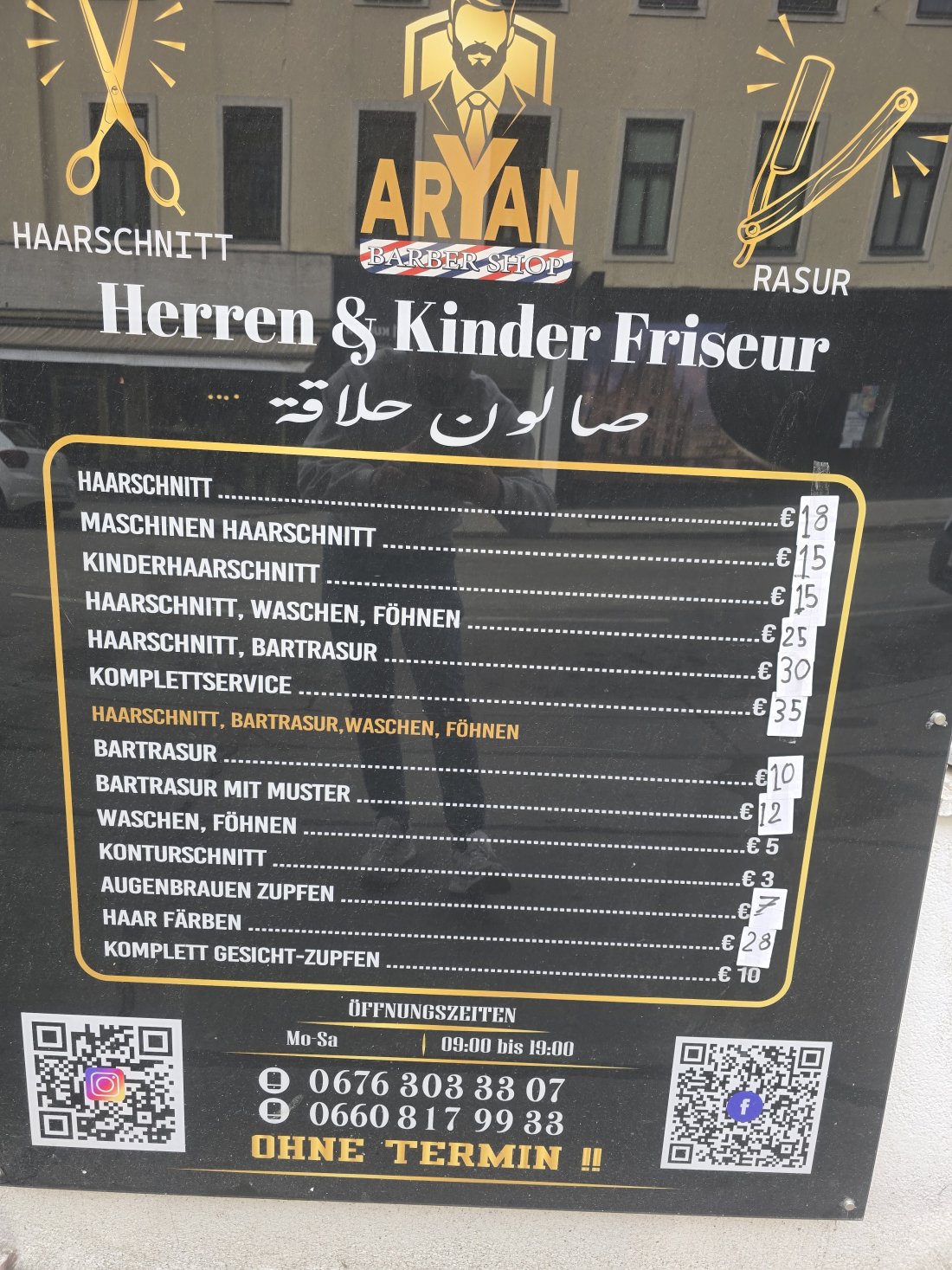 Aryan Friseur steht für faire Preise und erstklassigen Service. Damit Sie sich schon vorab informieren können, geben wir Ihnen einen umfassenden Überblick über unsere Angebote. Ob Kurzhaar, Langhaar oder Komplettstyling – Sie wissen stets, was Sie erwartet. Unsere Preise beim Haareschneiden in 1170 Wien sind fair und Sie enthalten stets eine umfassende Beratung. Wir freuen uns auf Sie!